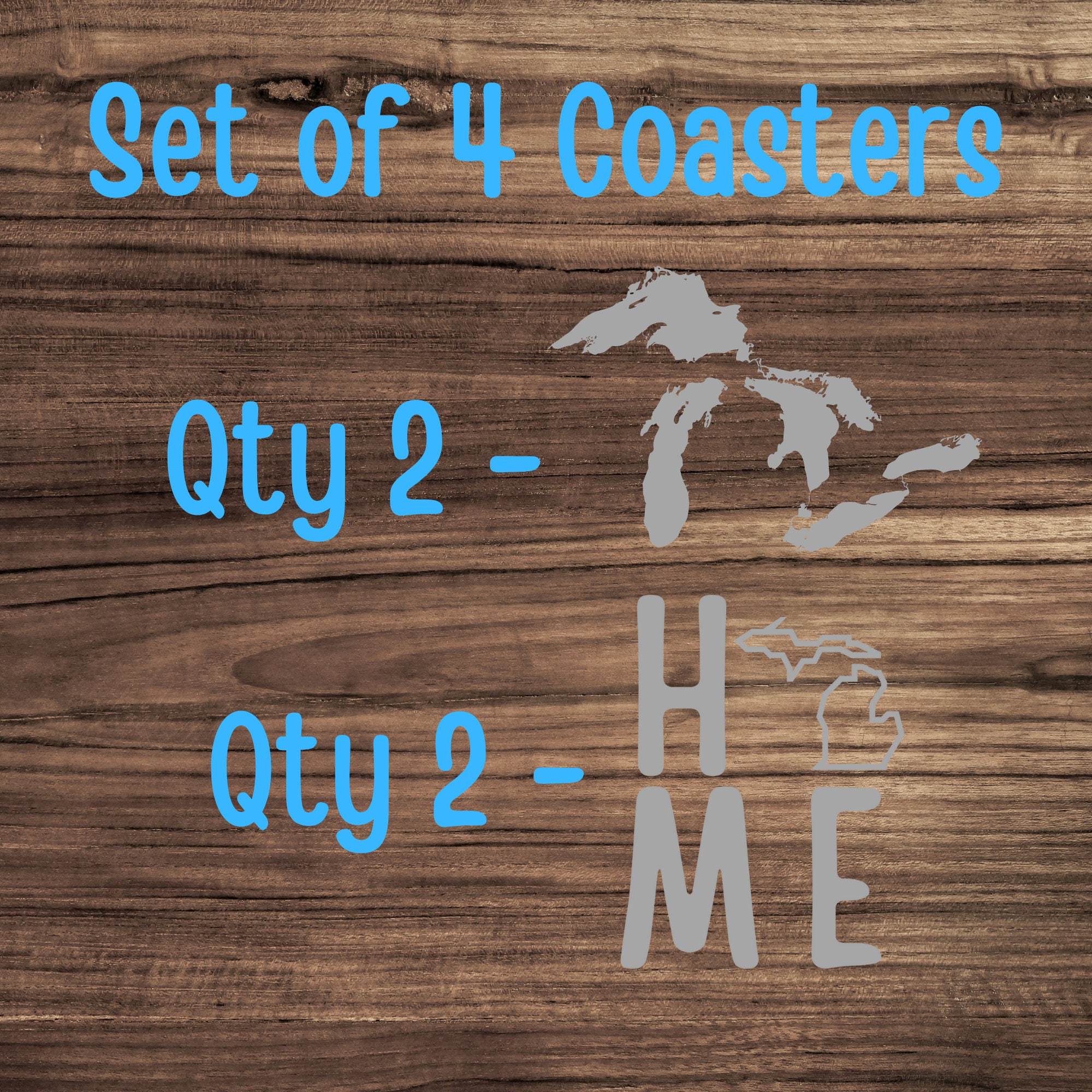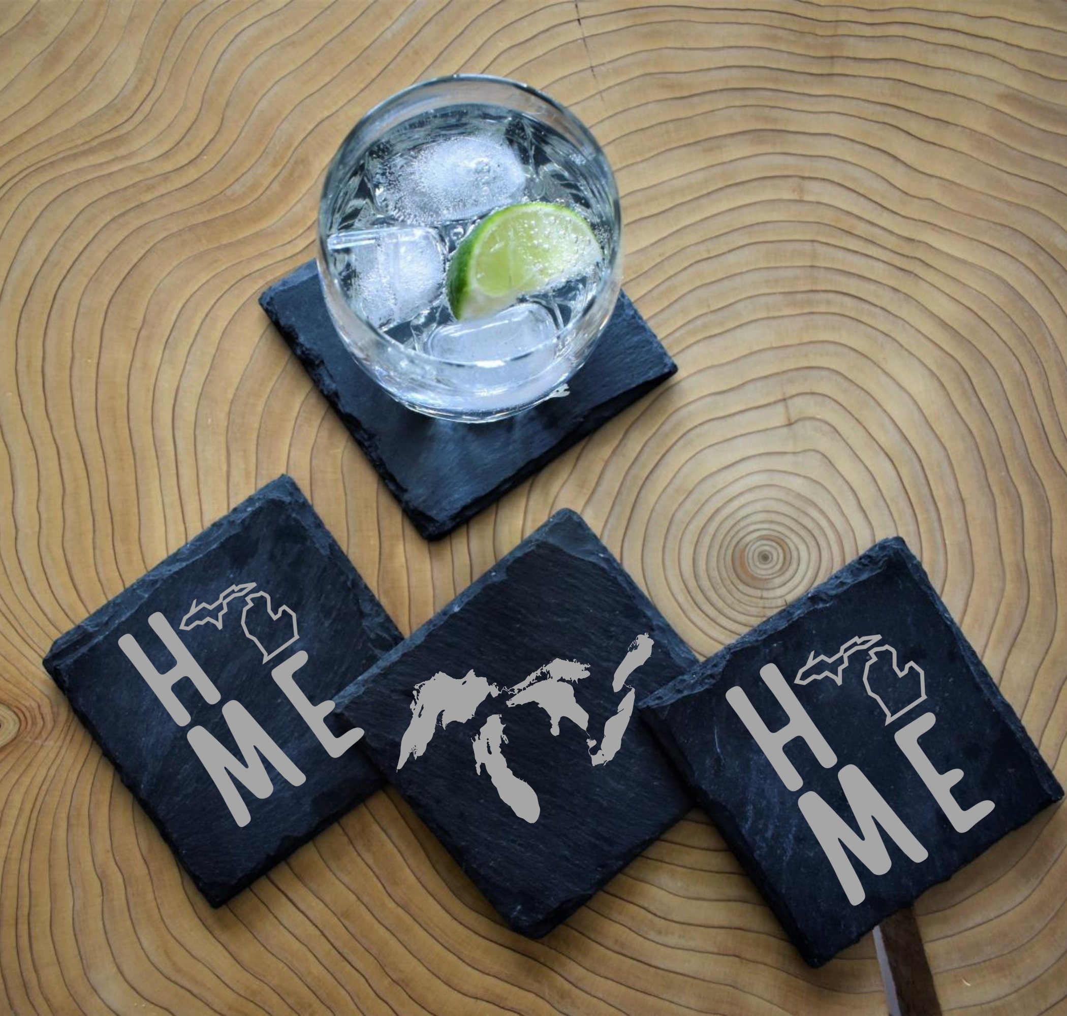 Michigan "Home" Slate Coasters - Set of 4 (Michigander, Native, Home, Pure Michigan)