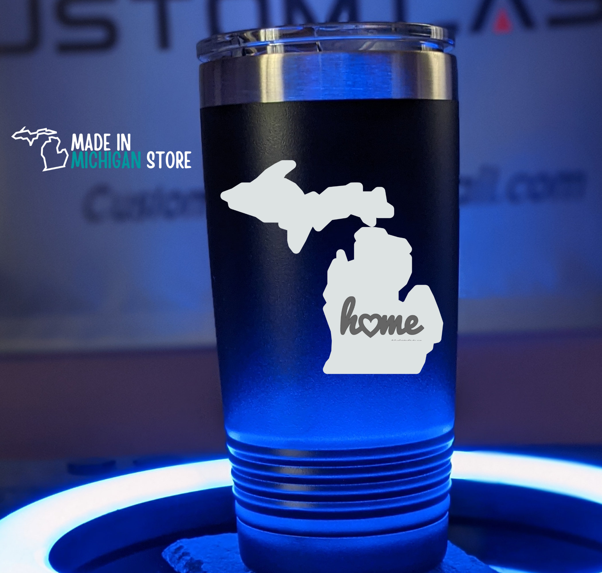 Michigan Home Heart Love - Insulated Tumblers - Michigan Home, Great Lakes, & More20 oz Tumblers in Teal, White, Black, or Pink