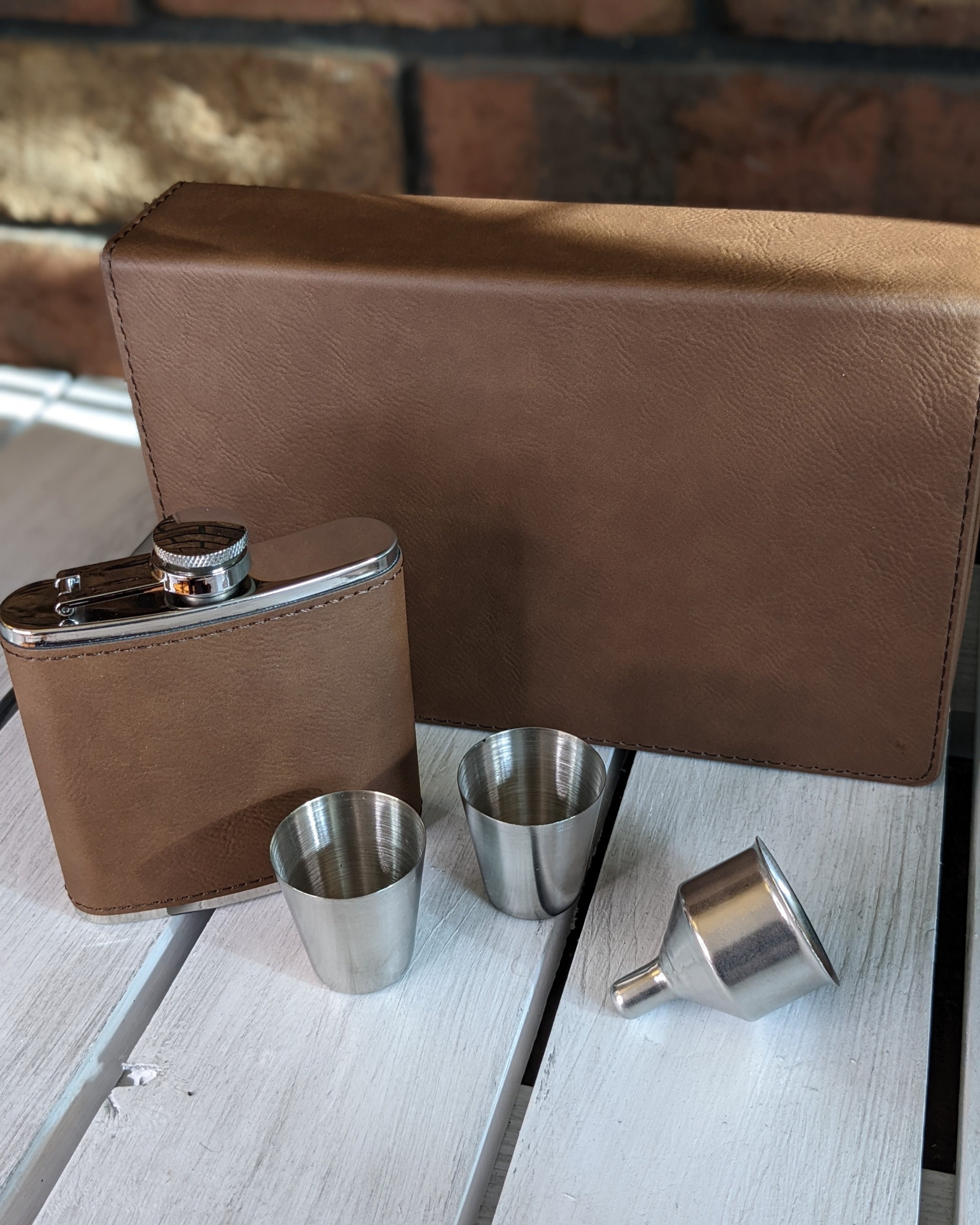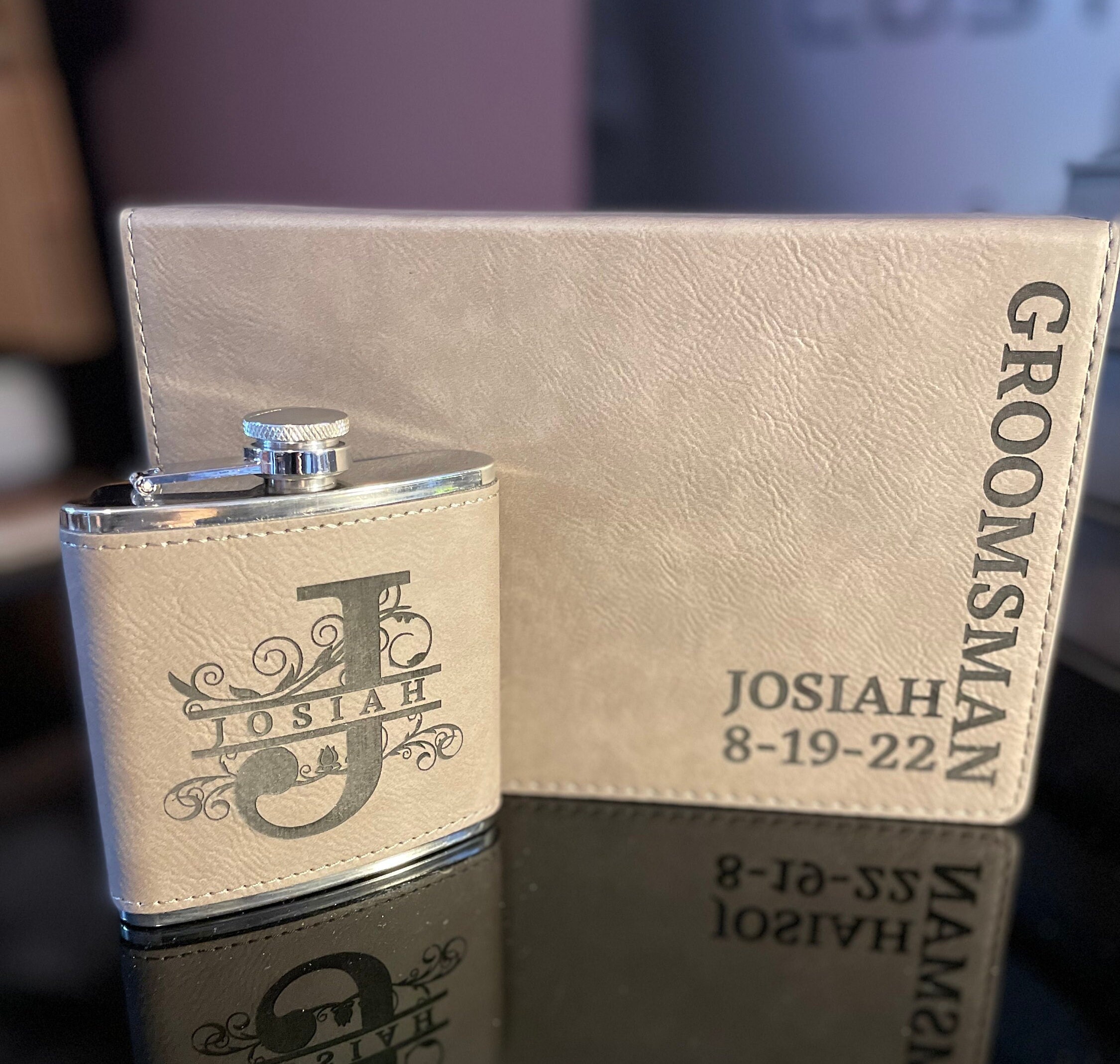 Personalized Flask Set - Leather Hip Flask, Best Man Flask, Bridal Party, Bride, Groom, Party Favors, gifts, Name Date Groomsman Flask