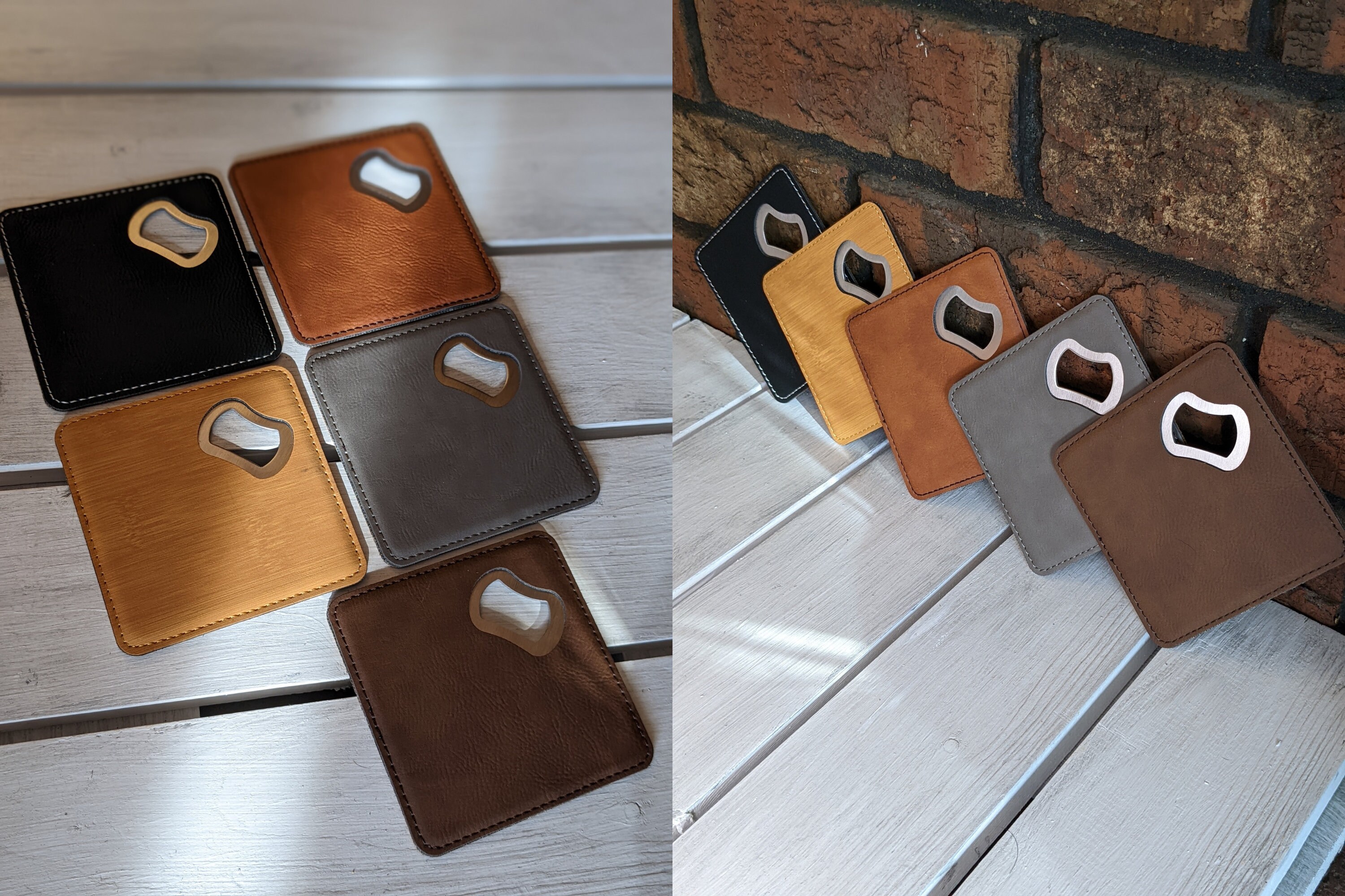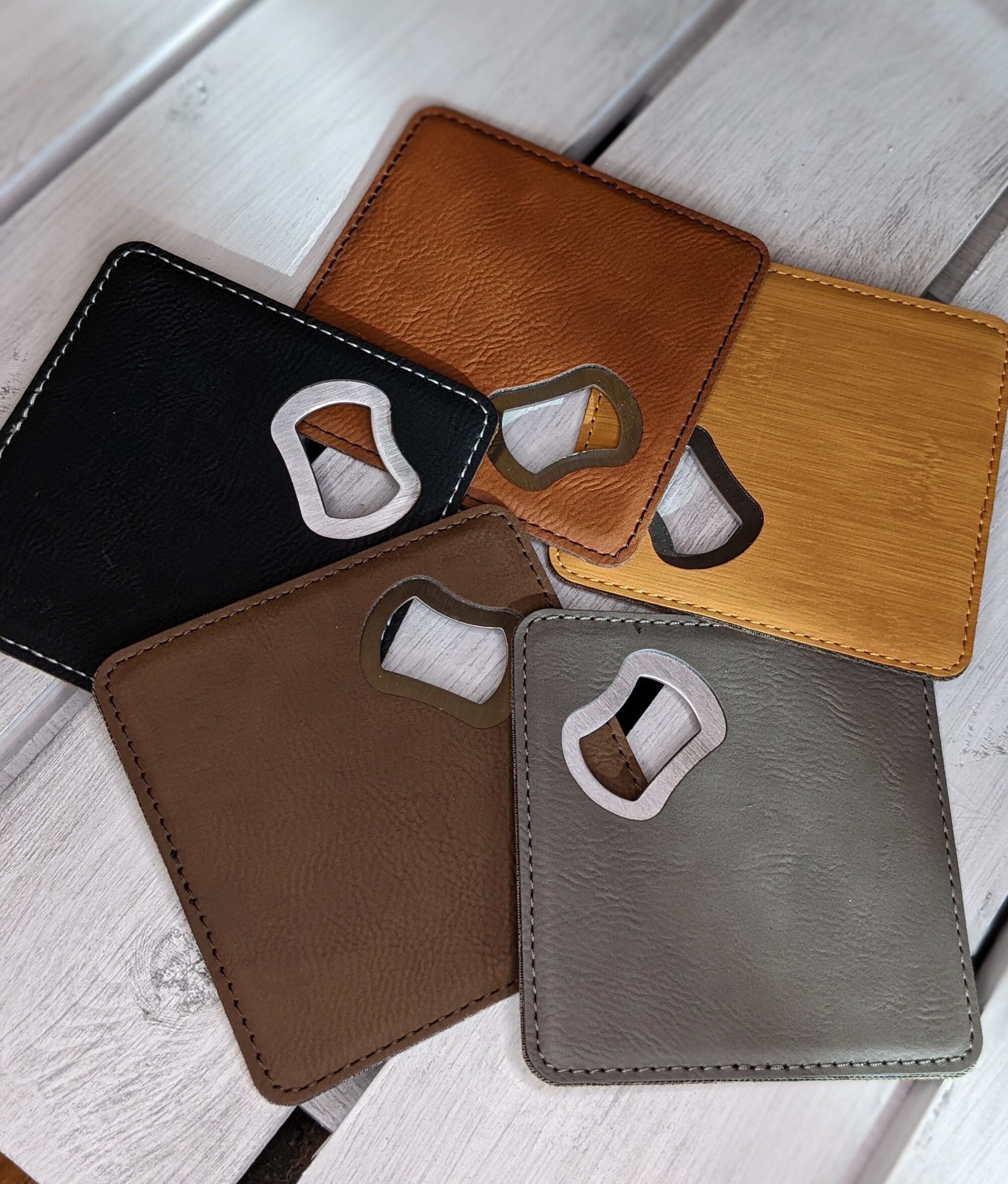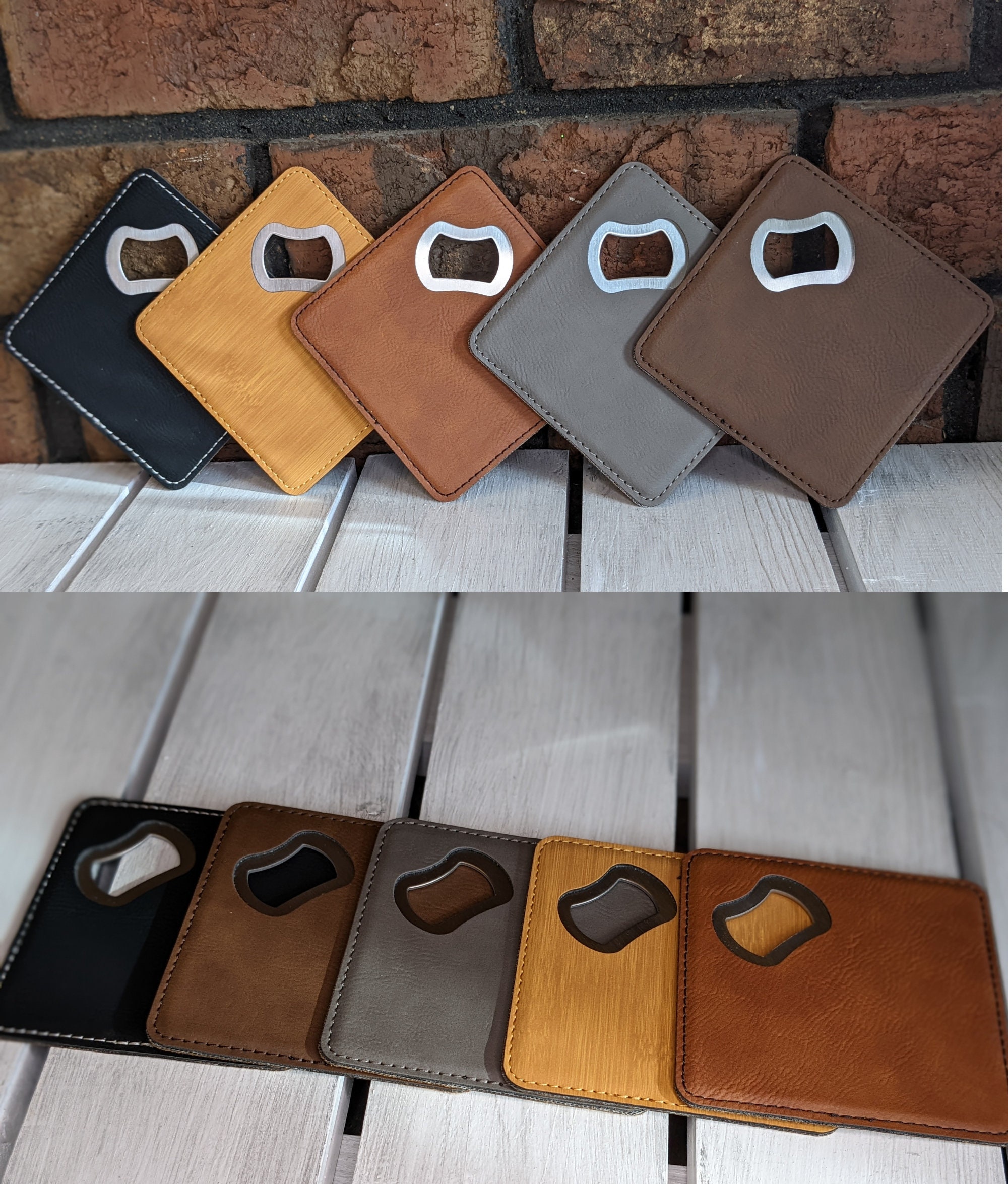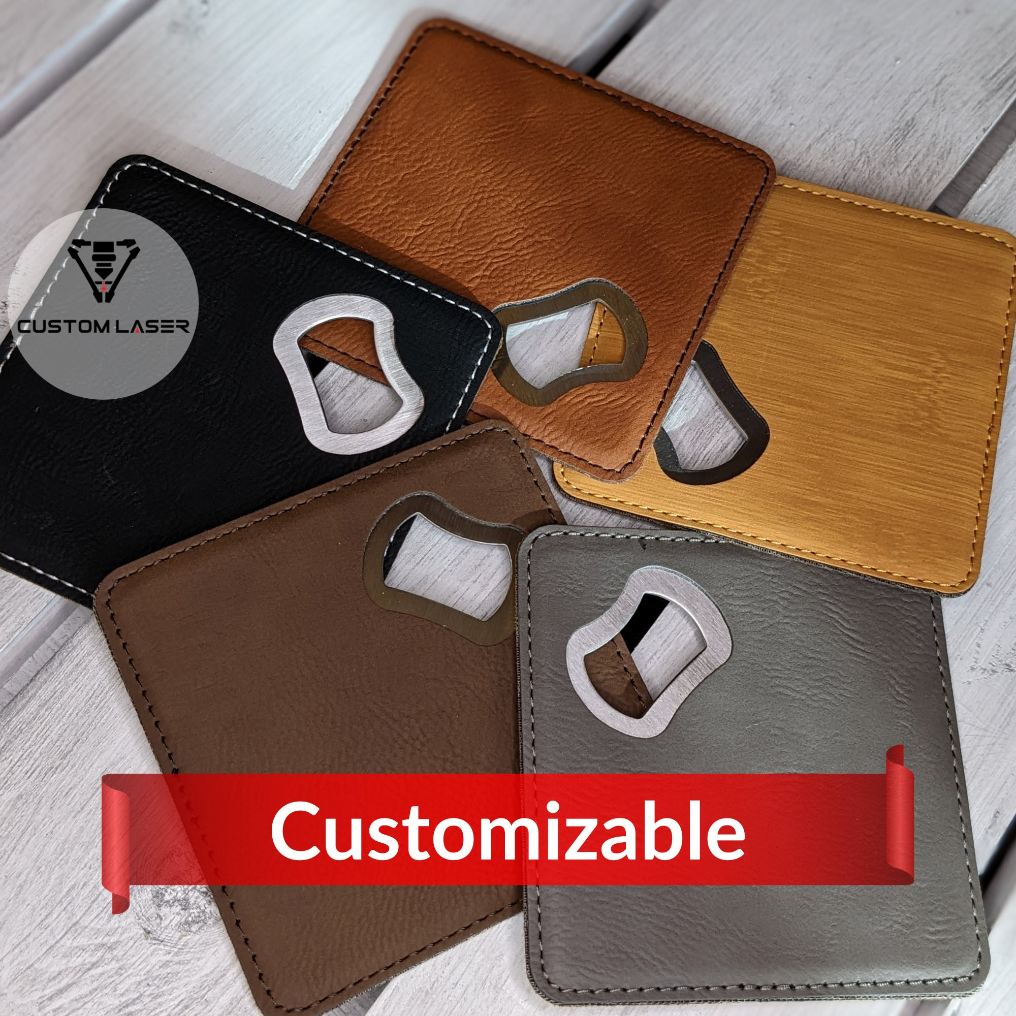 Custom Engraved Leatherette Coaster & Bottle Opener