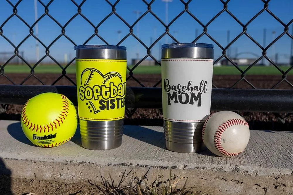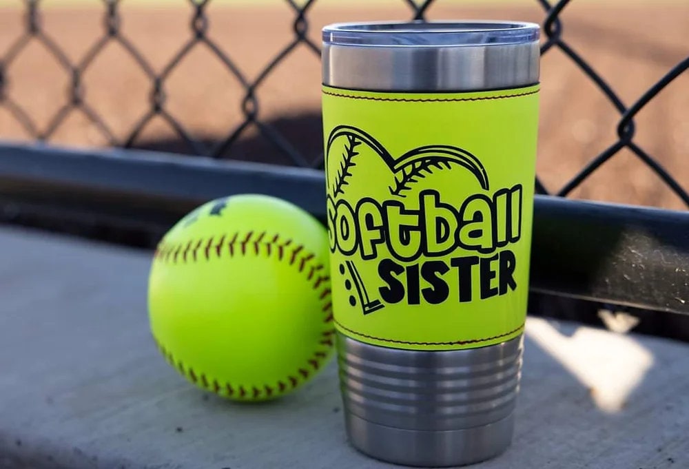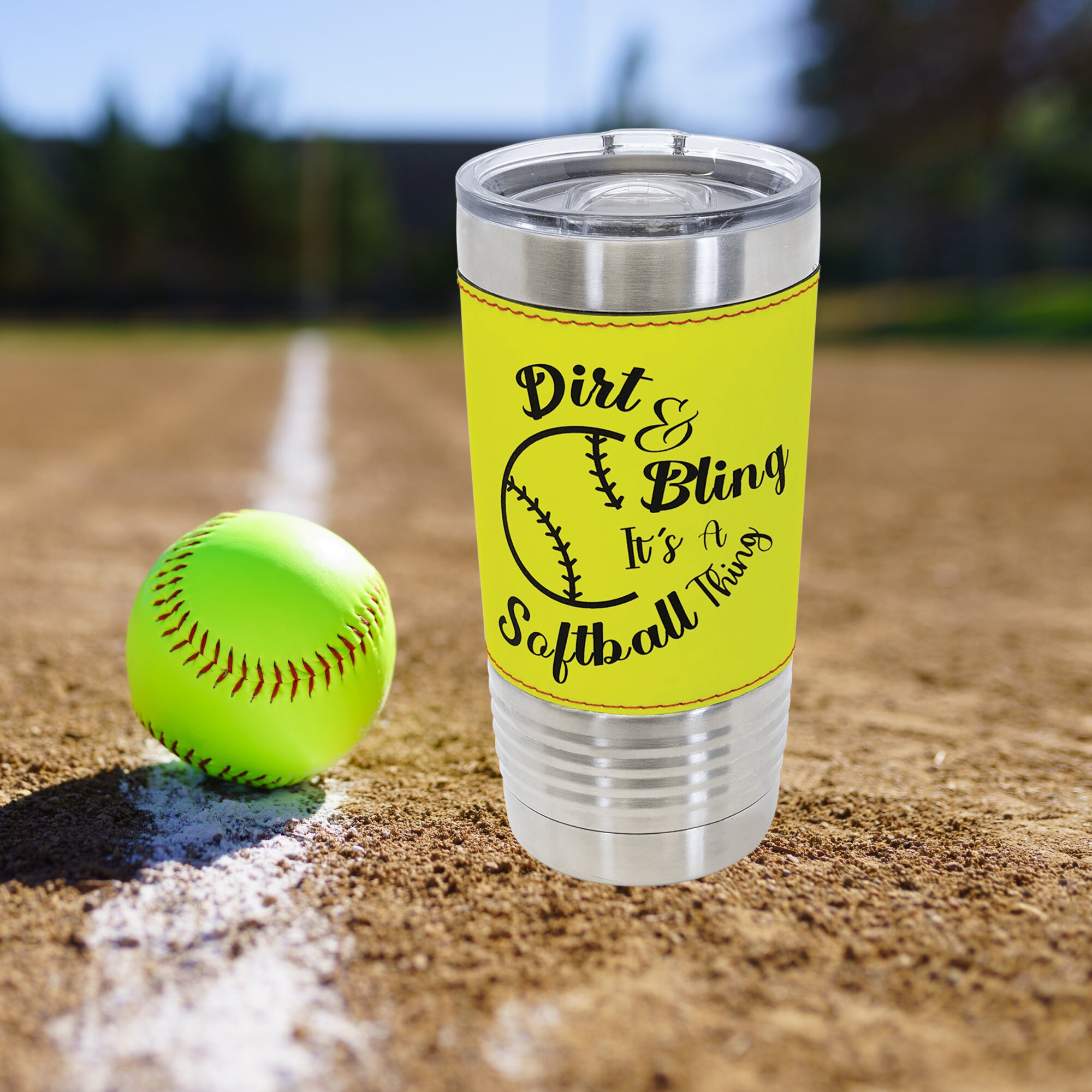 If you're looking for a new and unique award for softball leagues, school teams, or just a fun personalized gift for their biggest fans, this leatherette wrapped Polar Camel 20 oz. tumbler is perfect! Just add a team logo or other graphics of choice! The tumbler has the heat/cold retention properties you expect from Polar Camel drinkware and comes with a slider lid to help prevent spills. Tapered at the bottom, it fits most cup holders. Great for Booster Club and League fundraisers too!