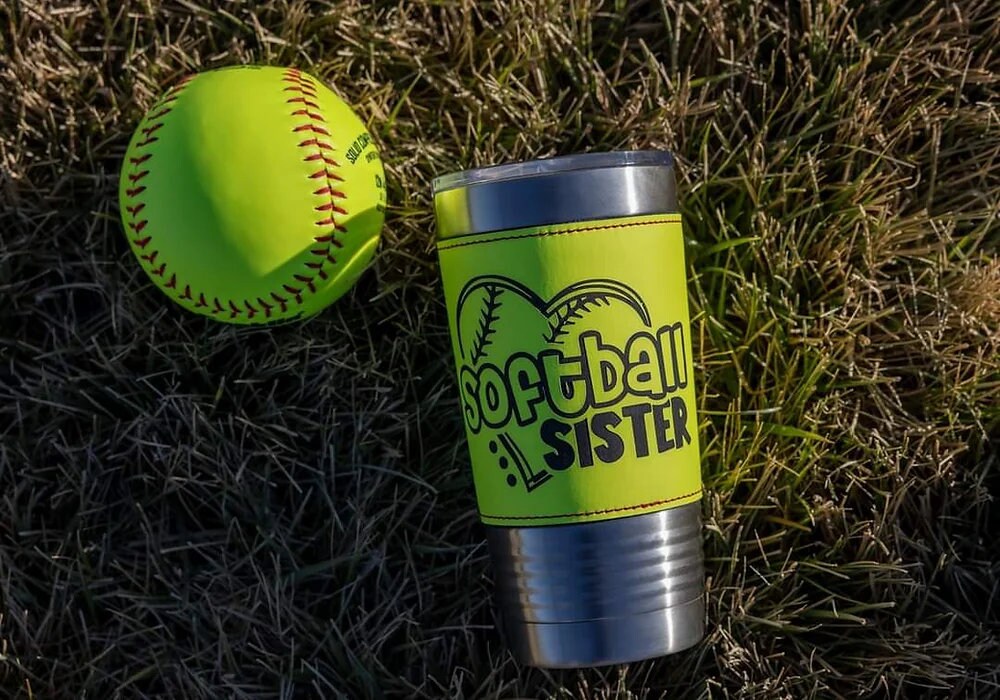 Polar Camel 20 oz. Softball Leather Tumbler with Slider Lid