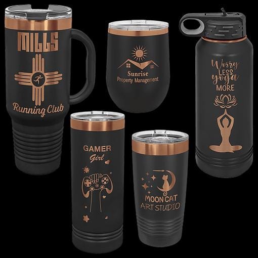 Custom Engraved with your name, logo, or design. Please feel free to reach out to me for design help!