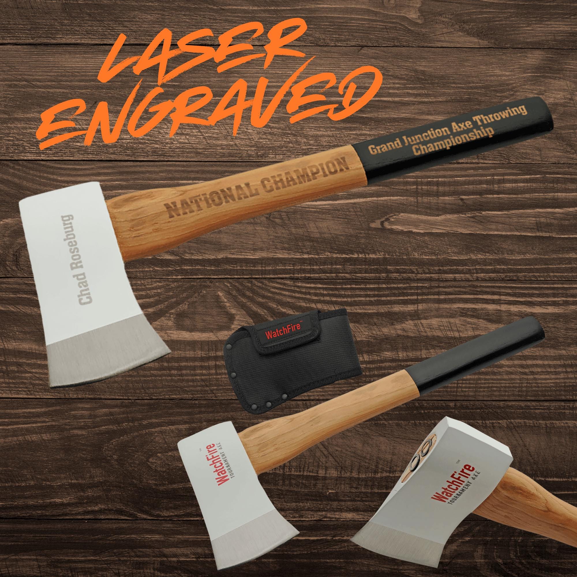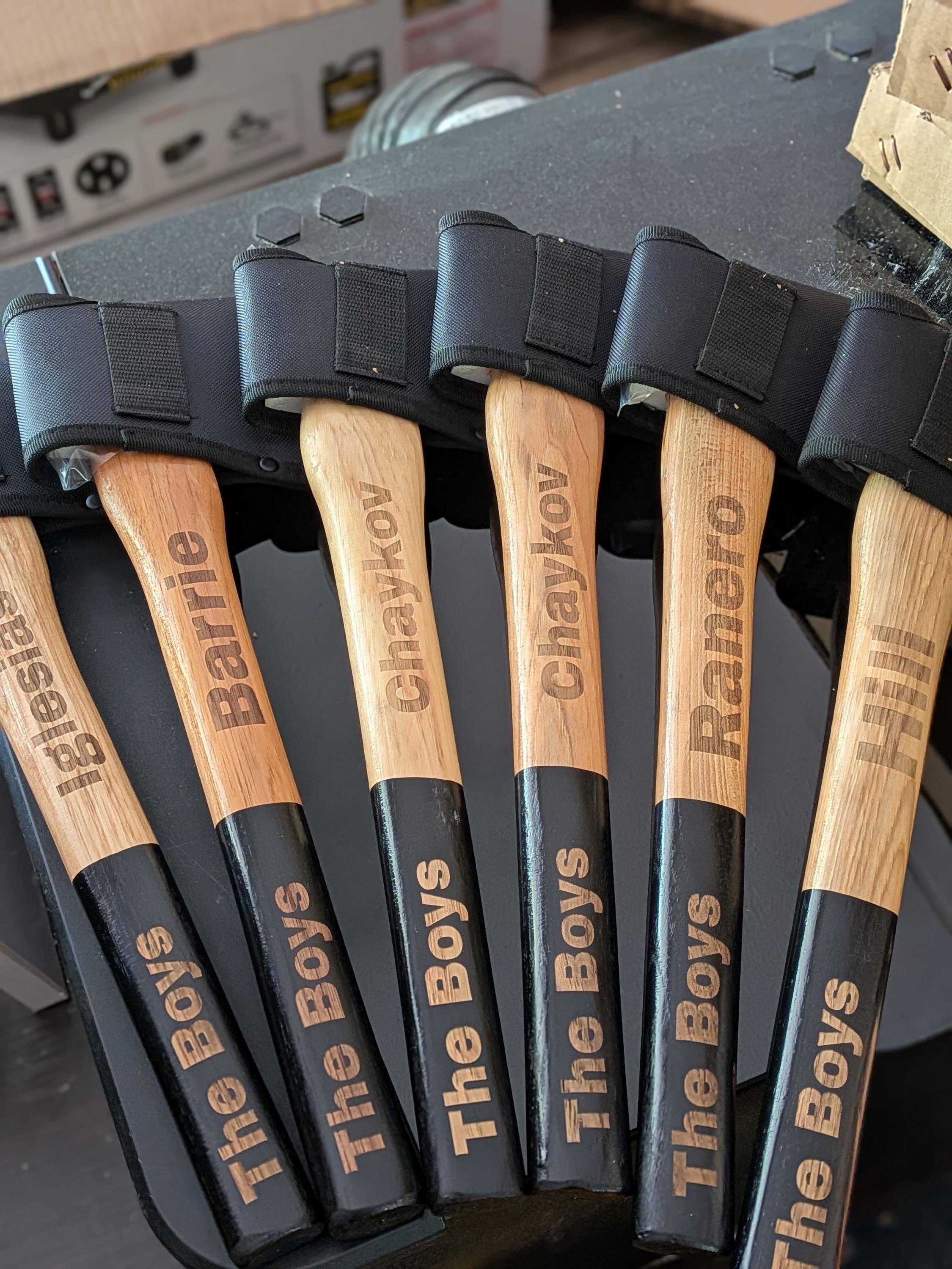 These axes can be custom laser engraved with your name, logo, saying, or design. Contact us for more information with design help!