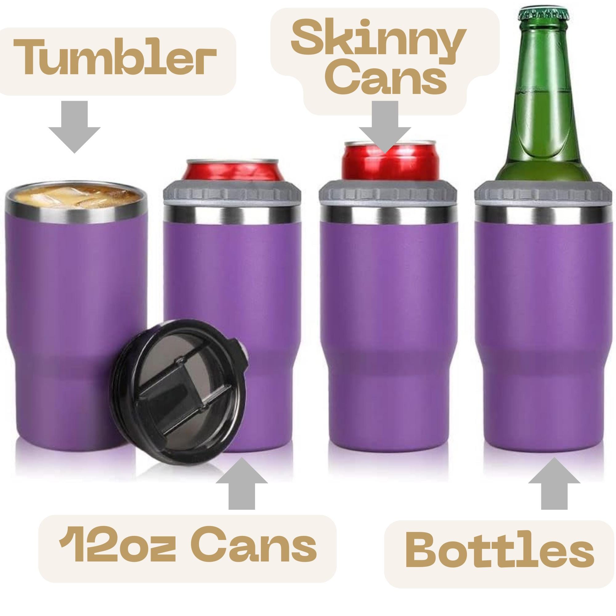 Keep your drinks ice-cold and your style unique with the ultimate versatile beverage companion! Whether you’re sipping a craft beer, a skinny seltzer, or your morning coffee, this 4-in-1 insulator does it all.